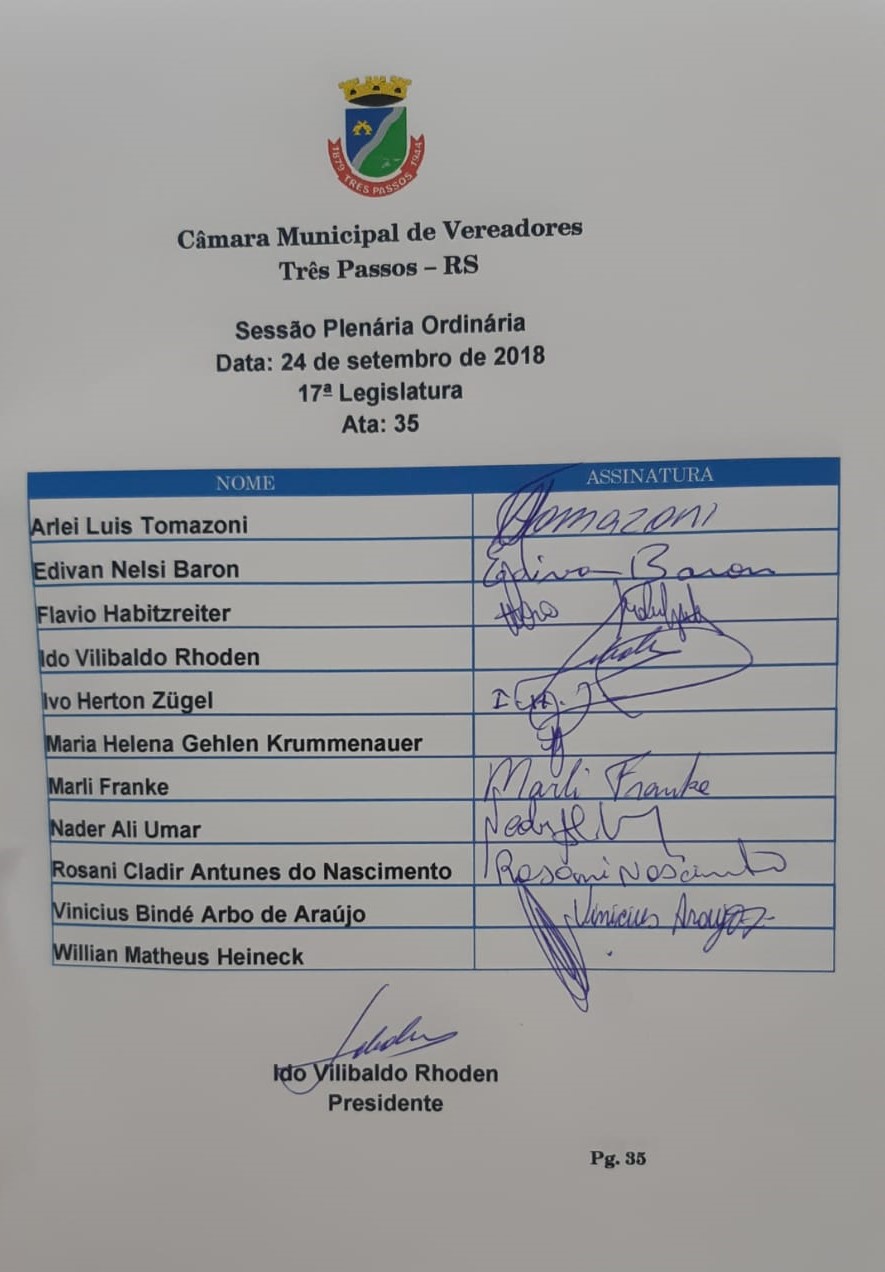 35ª Ordinária da 2ª Sessão Legislativa da 17ª Legislatura