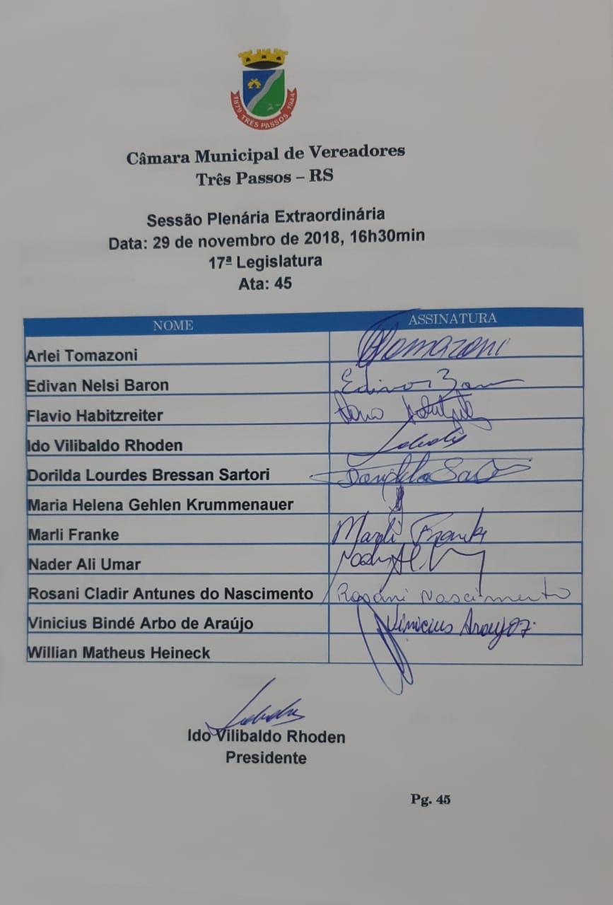 45ª Extraordinária da 2ª Sessão Legislativa da 17ª Legislatura